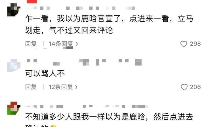“能骂吗?”“一开始还以为是鹿晗发婚讯,点进来发现搞错了,本来想走,结果越想越气,回来留个言。”